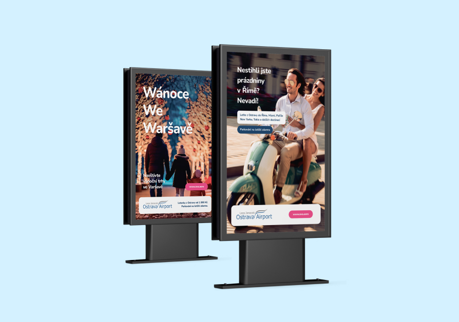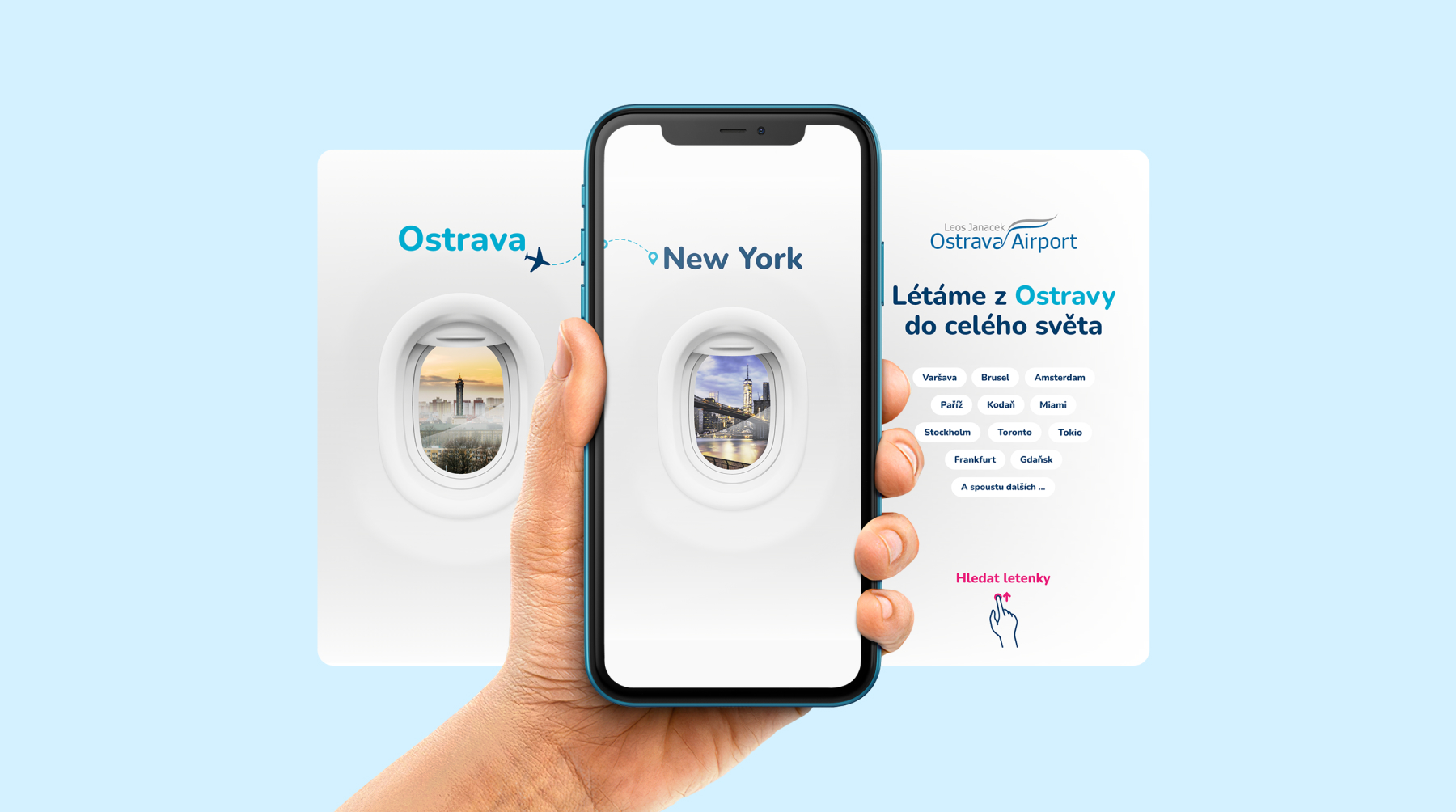Realizace tohoto projektu vznikla pro naše marketingové parťáky Dva Mluvčí a jejich klienta Letiště Leoše Janáčka v Ostravě. Z Ostravy je možné se dostat do celého světa a byla by škoda, kdyby o tom veřejnost nevěděla. Díky agentuře Dva Mluvčí teď o tom ví téměř všichni a my jsme pyšní, že jsme mohli navrhnout desítky kreativ, které tomu pomohly.