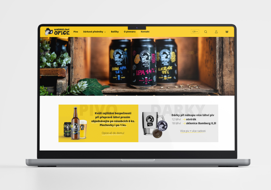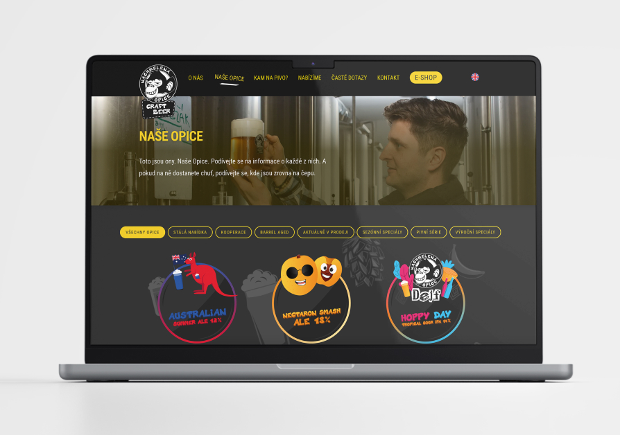 Navrhli jsme přehledný a přesto hravý web, kde Nachmelená Opice prezentuje své nové receptury nebo informuje o místech, kde jejich pivo vyzkoušíte. Vyzkoušet ho můžete taky přímo v Krnově při degustační prohlídce v jejich pivovaru.