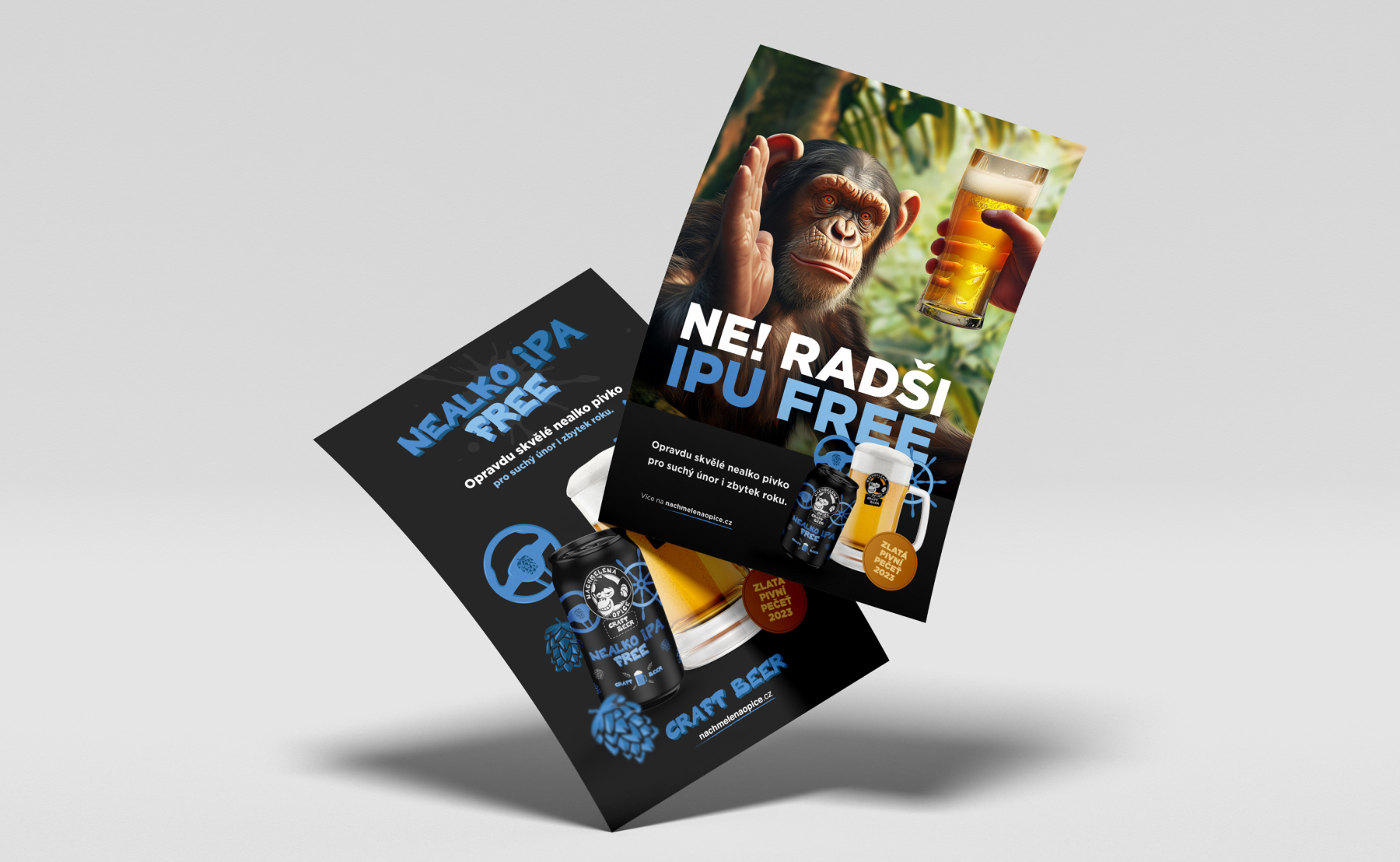 Opičáci vytvořili bezkonkurenční nealko pivko IPA. Garantujeme vám, že lepší nealkoholické pivo jste neměli. My jsme pro něj vytvořili etiketu, jak na skleněnou lahev, tak na plechovku. Dva Mluvčí zase vytvořili profesionální video reklamy, které pomáhají s prodejem jak nealko IPY, tak té s alkoholem. Mrkněte se na ně.